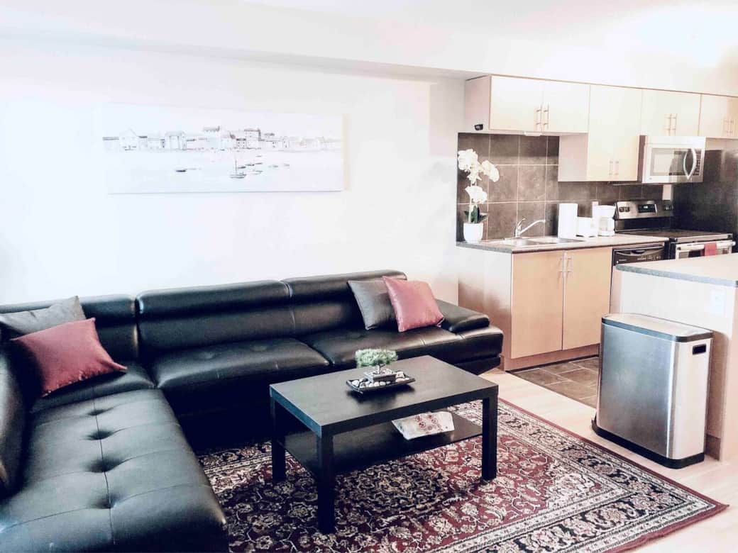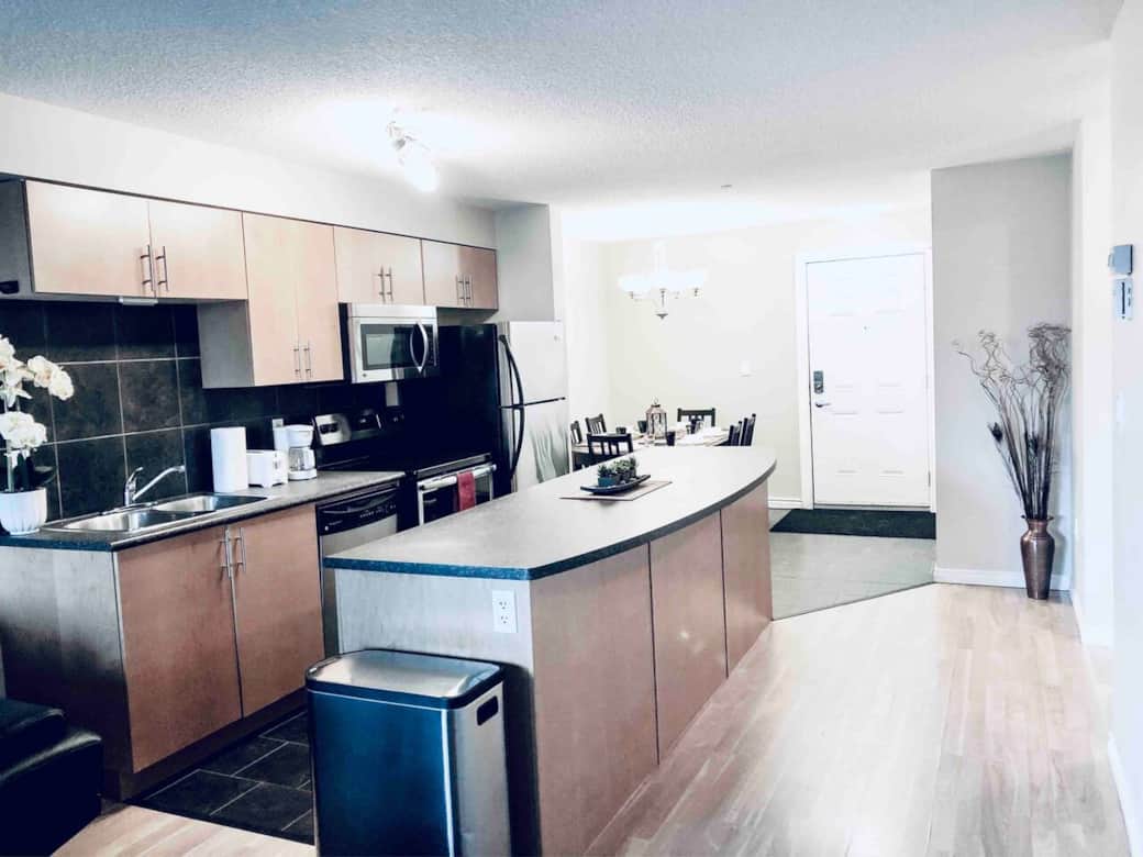 Features 2 bedrooms, 2 bathrooms, ensuite laundry, 2 queen beds, and an L-shaped sectional. You’ll love the 5-minute walk to Rogers Place, with restaurants, pubs, sports bars, and the casino all just steps away. The suite also includes ensuite laundry and underground heated parking for your comfort and convenience.
